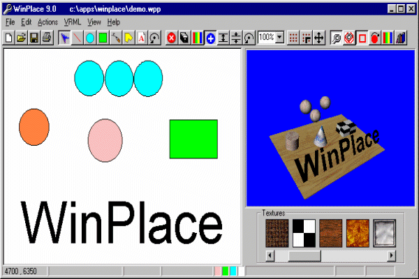 WinPlace WinPlace 9.3 is freeware. It is a feature-rich 2D and 3D modeling tool (written in Visual Basic) which allows rapid creation and visualization of design concepts. It's WMF, VRML and BMP file export formats support insertion of the design into most Windows/CAD applications.